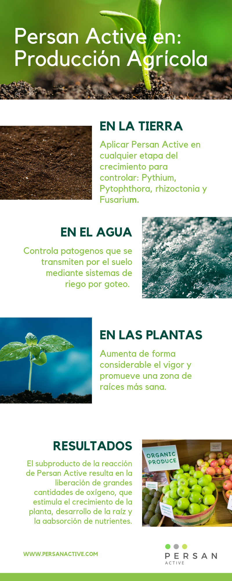 Para la producción agrícola somos el mejor aliado en todo el proceso. Nuestro ácido peracético formulado, mejora los resultados porque actua como: Sanitizante, Desinfectante, Esterilizante, Virucida, Antimicrobial, Esporicida y Limpiador.